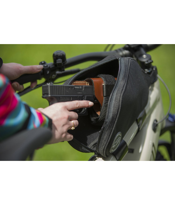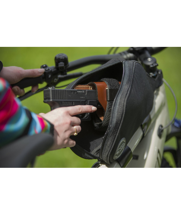 Cyklo-taška G126 taška na skryté nosenie pre cyklistov s uchytením o horný rám bicykla slúži na pohodlné skryté nosenie micro, subcompact, compact a full-size zbraní počas cyklistiky. Vzhľad tašky neprezrádza že sa v jej vnútri nachádza pištoľ alebo revolver, kým uchytenie o rám bicykla zabezpečuje vašu bezpečnosť v prípade pádu a stabilné umiestnenie vašej zbrane a extra zásobníkov. Ideálne riešenie pre cestnú aj horskú cyklistiku, ktoré poskytuje priestor pre odloženie aj ostatných predmetov dennej potreby ako kľúče, doklady, mobilný telefón či peňaženku.